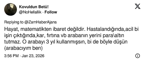 Araba bir yatırım aracı değilidir. Bu sebeple yapılan kıyaslamayı pek çok kişi mantıksız buldu. Kimileri arabayı yatırım aracı olarak görüp bu hamleyi yapanların bu zararı hakettiğini savunurken kimileri ise arabanın pek çok ihtiyacı karşıladığını, bu sebeple edilen zarara değeceğini belirtti.