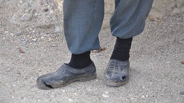Dün DHA objektiflerine takılan bu fotoğraf yürekleri dağladı. Baba Recep Gökçe'nin ayağındaki eski ve yırtık lastik ayakkabılar... Bu fakirliğin ve hüznün fotoğrafıydı.