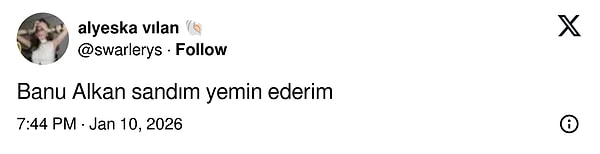 Video kısa sürede sosyal medyada yayılınca olanlar oldu. X ahalisi yine boş durmadı. “Banu Alkan sana heyecanlanmış olabilir”, “Kafada kurma seviyem”, “Benim olayları abartma seviyem” yorumları havada uçuştu.