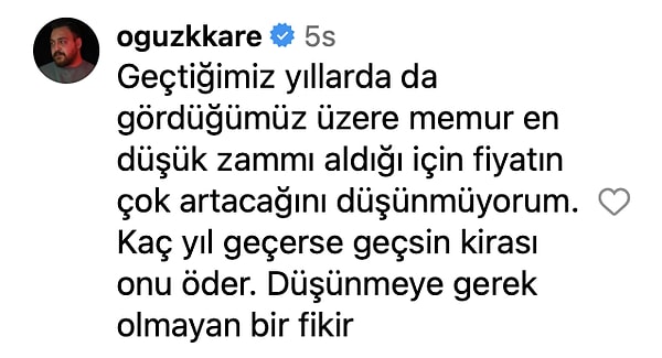 Ödediğimiz 6750 TL'lik taksite her 6 ayda bir, memur maaşına gelen zam kadar zam geleceğini belirten kadın, maaşınıza ve size yapılan zam oranına göre bu ödeme düzenine hazırlıklı olmamız gerektiğini söyledi. Fakat pek çok kişi kira fiyatlarına yapılan zamların yanında bu miktarın pek de önemli olmayacağını belirterek, bu detayı önemli bulmadı. Peki siz bu konuda ne düşünüyorsunuz?