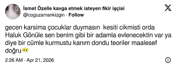 Türk televizyon tarihine damga vuran yapımlardan biri olan Çocuklar Duymasın, yepyeni bir görüşle yeniden gündeme geldi. Dizide 'taş fırın erkeği' olan Haluk'un gizli bir hayranı daha olduğu iddia edildi. Üstelik o kişi, Meltem'in en yakın arkadaşı Gönül! Bir X kullanıcısı Gönül'ün Haluk'a gizliden gizliye aşık olduğunu iddia etti.