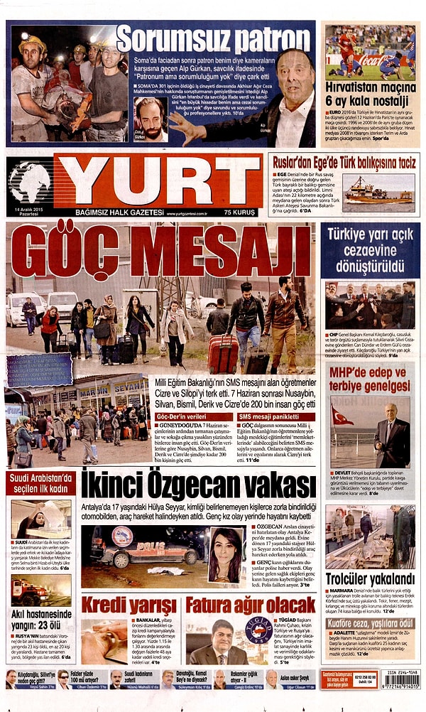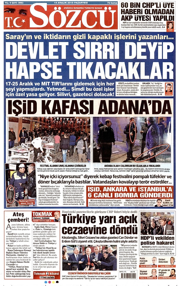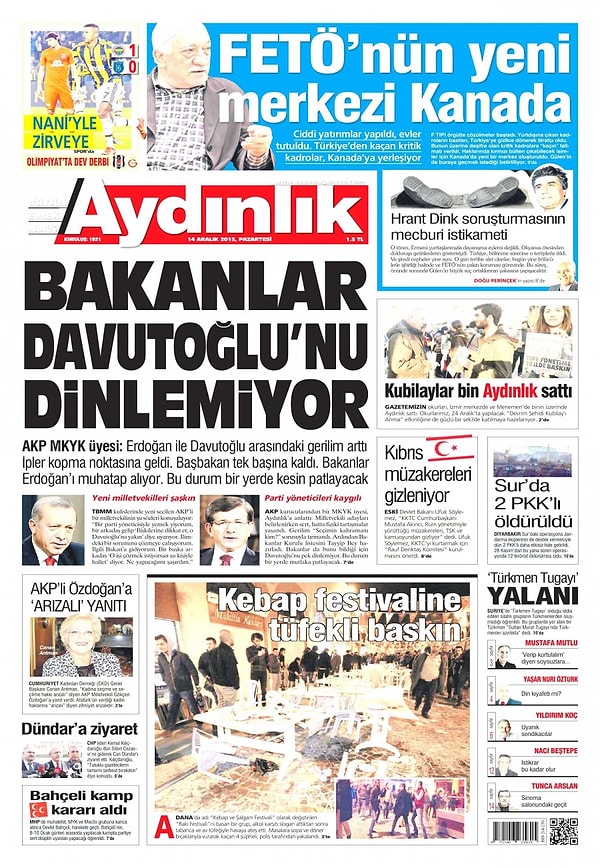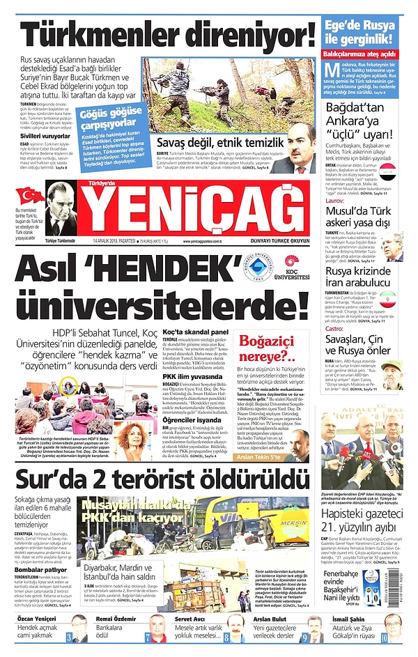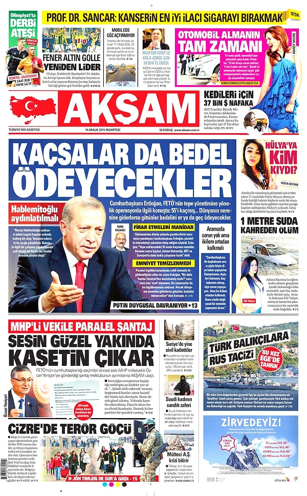 Gazetelerde Bugün | 14 Aralık Pazartesi