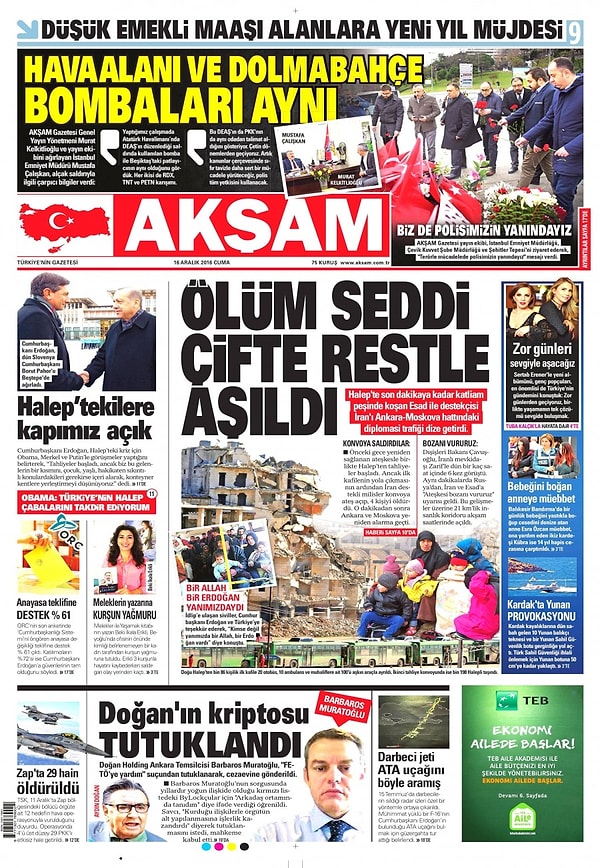 Gazetelerde Bugün | 16 Aralık Cuma