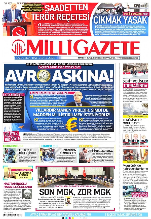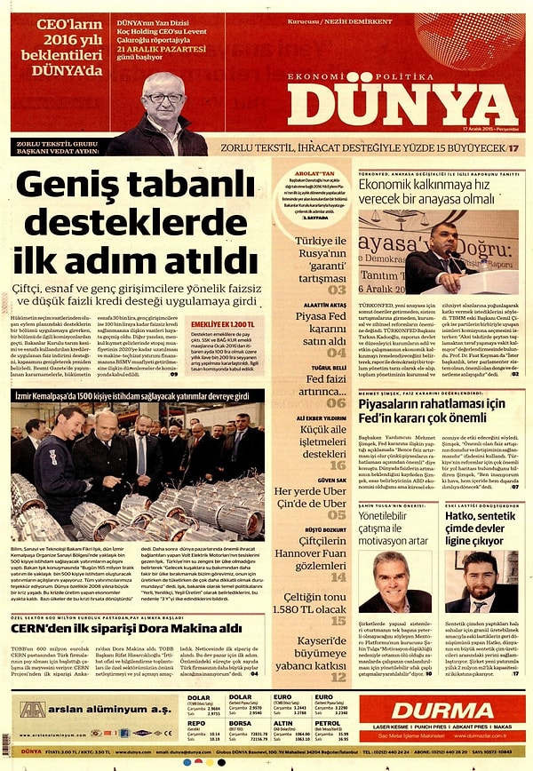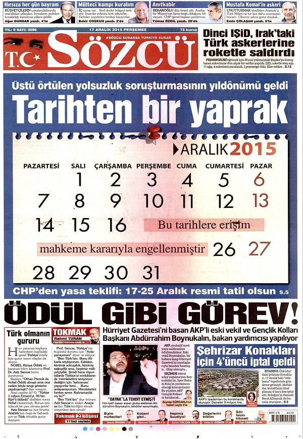 Gazetelerde Bugün | 17 Aralık Perşembe