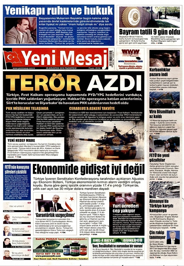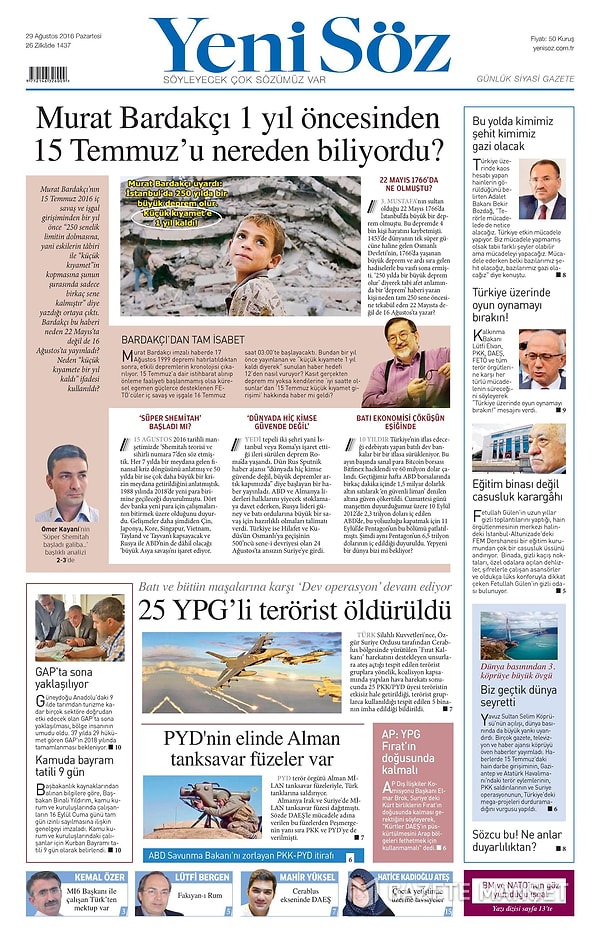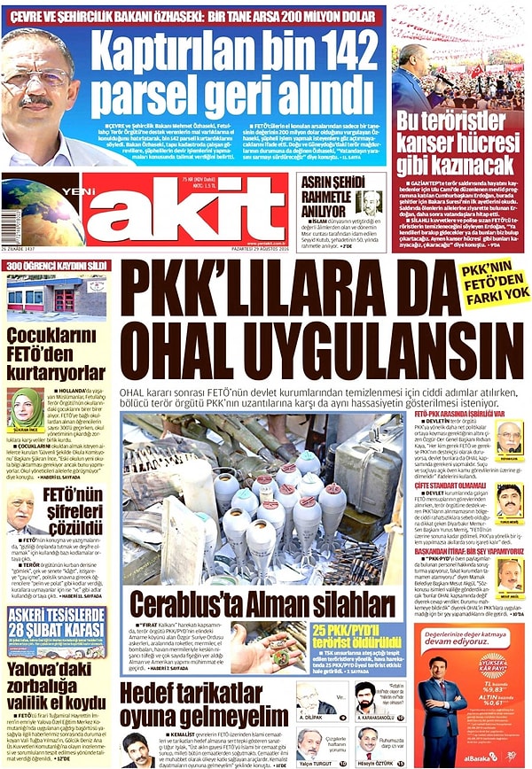 Gazetelerde Bugün | 29 Ağustos Pazartesi