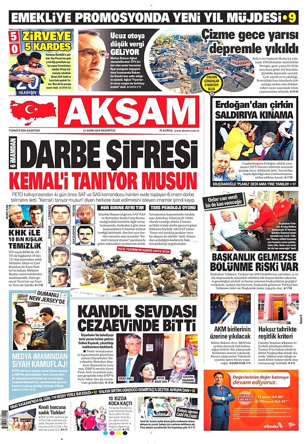 Gazetelerde Bugün | 31 Ekim Pazartesi