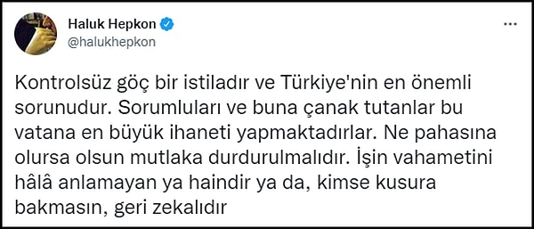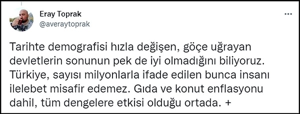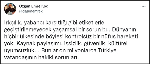 Ancak işi ırkçılık boyutuna taşımadan aklıselim şekilde kontrolsüz göçün Türkiye için beka sorunu olduğunu vurgulayan kullanıcılar da var. 👇