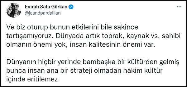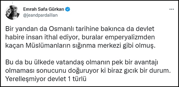 Tarihçi Emrah Safa Gürkan da "Irkçılıkla saçma bir ideolojik romantizm arasında kaldık" diyor. 👇