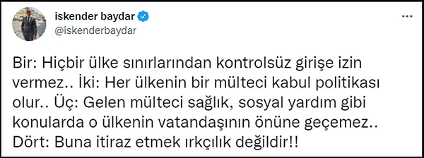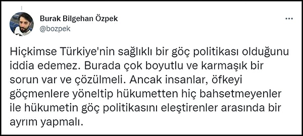 Pek çok kullanıcı da iktidarın hatalı göç politikasını eleştirmenin ırkçılık anlamına gelmediğini savunuyor. 👇