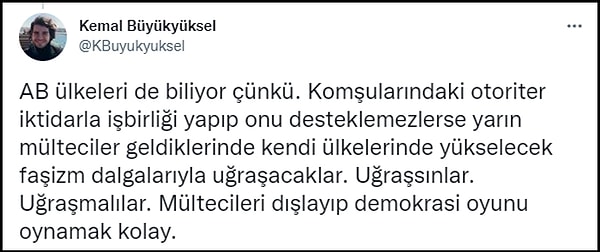 Ağırlıklı olarak sol ve Marksist çevrelerden isimler ise göçmenlere karşı olmanın net bir şekilde ırkçılık olduğu görüşünde. 👇