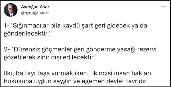 Türkiye’nin göç mevzuatının mimarlarından yabancılar hukuku uzmanı Aydoğan Asar, konuyla ilgili şu tespitleri yapıyor. 👇