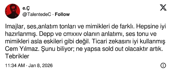 Cem Yılmaz’ın yıllar içinde sahneye taşıdığı stand-up gösterileri kadar, bu gösterilerde değişen imajı da sosyal medyada dikkat çekti.