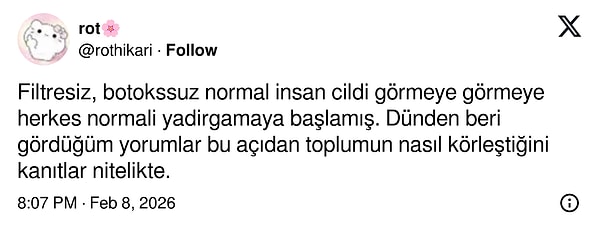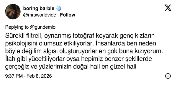 Kısa sürede yayılan görüntü sonrası bazı kullanıcılar “Böyle de çok güzel, gerçek haliyle harika” yorumları yaparken, bazıları ise “Filtresiz hali hiç iyi değil” demekten çekinmedi.