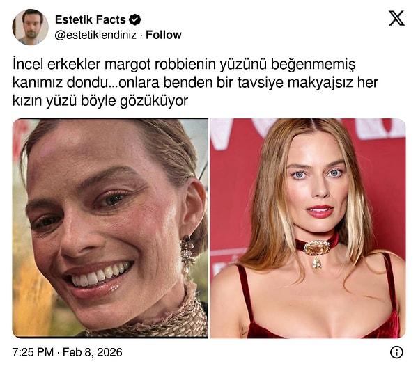 Özellikle Hollywood yıldızlarının kusursuz görünüm algısı yeniden masaya yatırılırken, Robbie’nin doğal hali de tartışmaların merkezine oturdu.