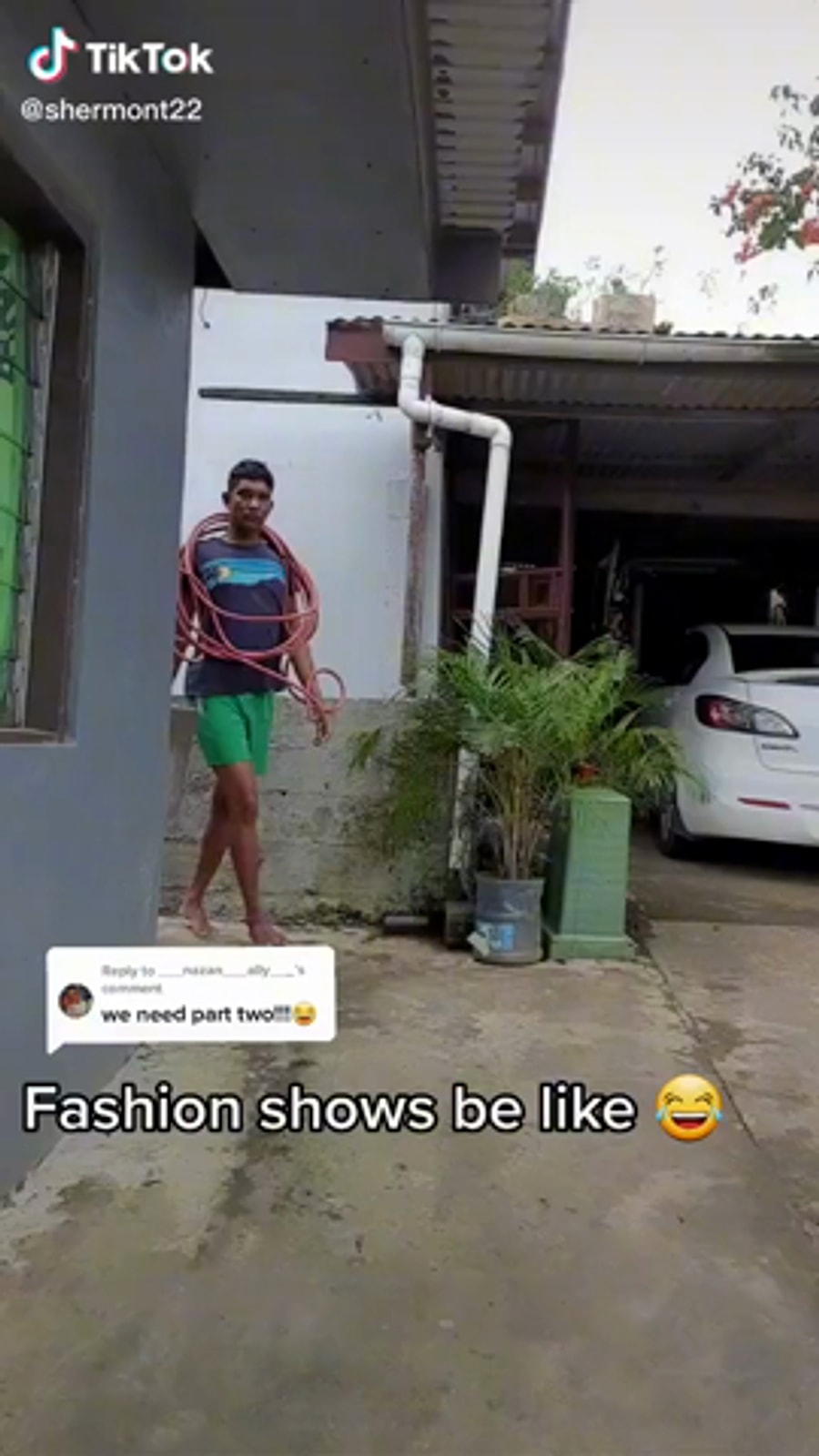 Uzun zamandır bu kadar güzel bir şey izlememiştim... TikToker Shaheel Shermont Flair evde ne bulursa üzerine geçirerek muhteşem bir defile serisine imza attı. İzliyoruz!