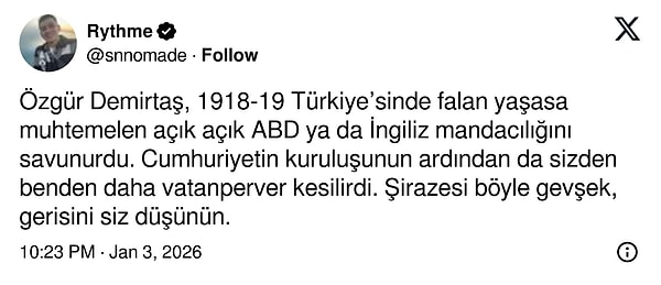 Özgür Demirtaş, X platformunda ABD'nin gerçekleştirdiği saldırılarla ilgili yazdığı yazılarla yoğun eleştirilerin odağı haline geldi.