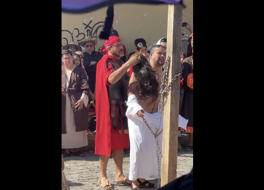 Meksika'da Hz. İsa'yı canlandıran adam elleri çözülünce bir anda çarmıhtan düştü. Kalabalık paniğe kapılsa da adama herhangi bir şey olmadı. Bu kazanın ardından, farklı törenlerden de benzer kaza görüntüleri gelmeye başladı.