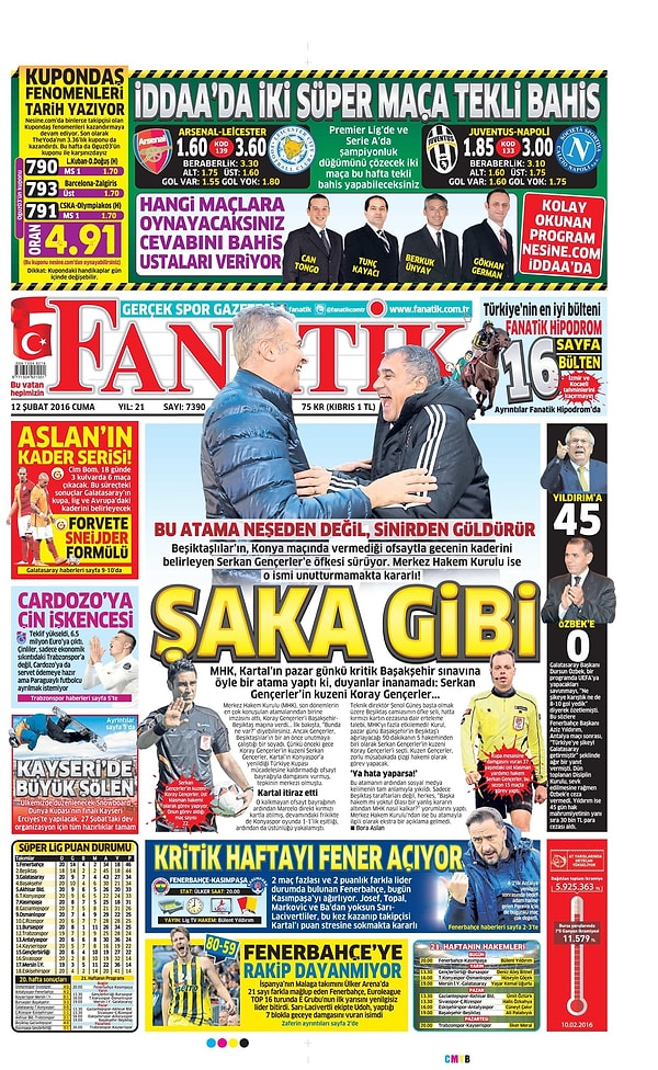 Sporun Manşetleri | 12 Şubat 2016