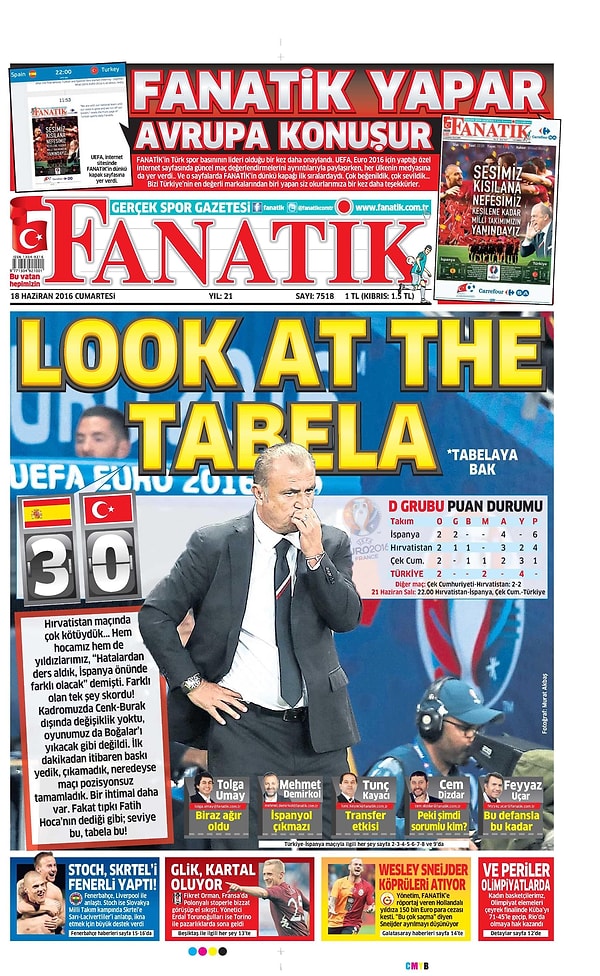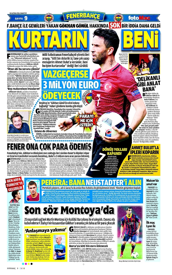 Sporun Manşetleri | 18 Haziran 2016