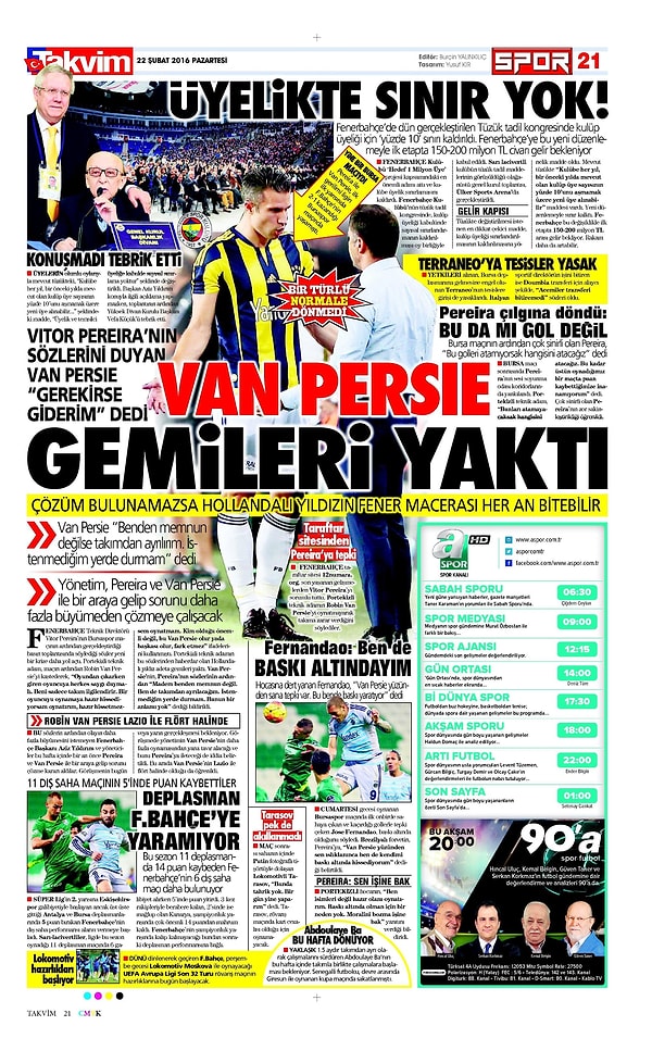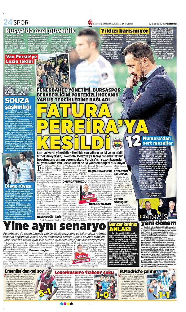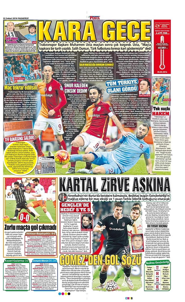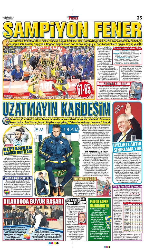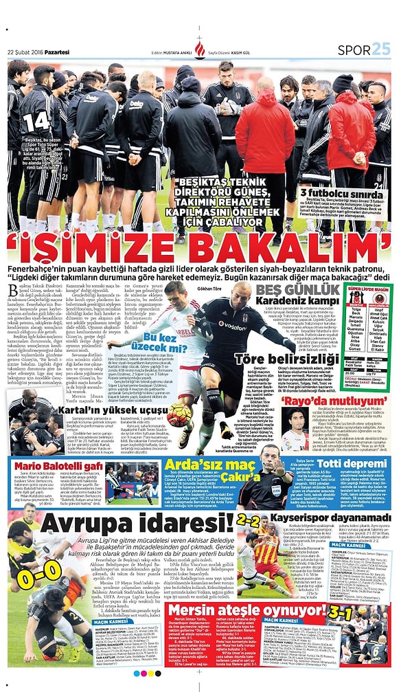 Sporun Manşetleri | 22 Şubat 2016