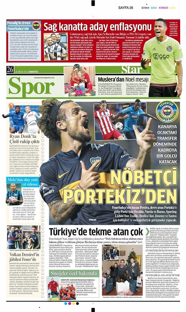 Sporun Manşetleri | 26 Aralık 2015