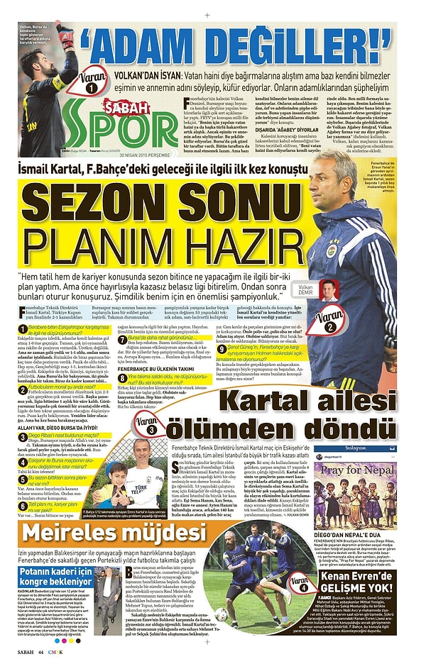 Sporun Manşetleri | 30 Nisan 2015