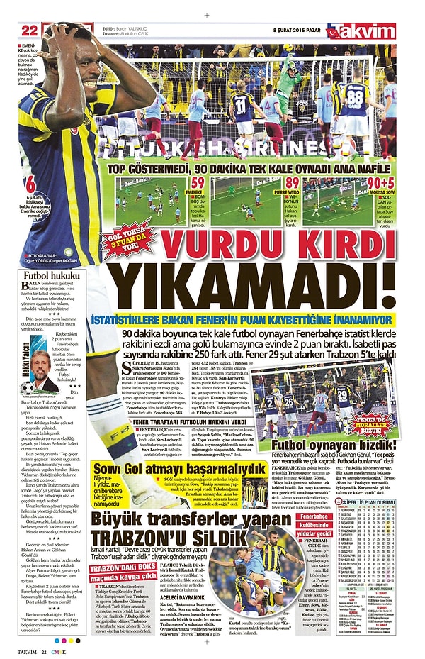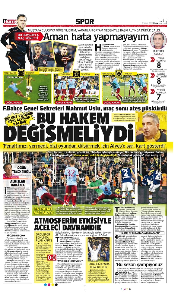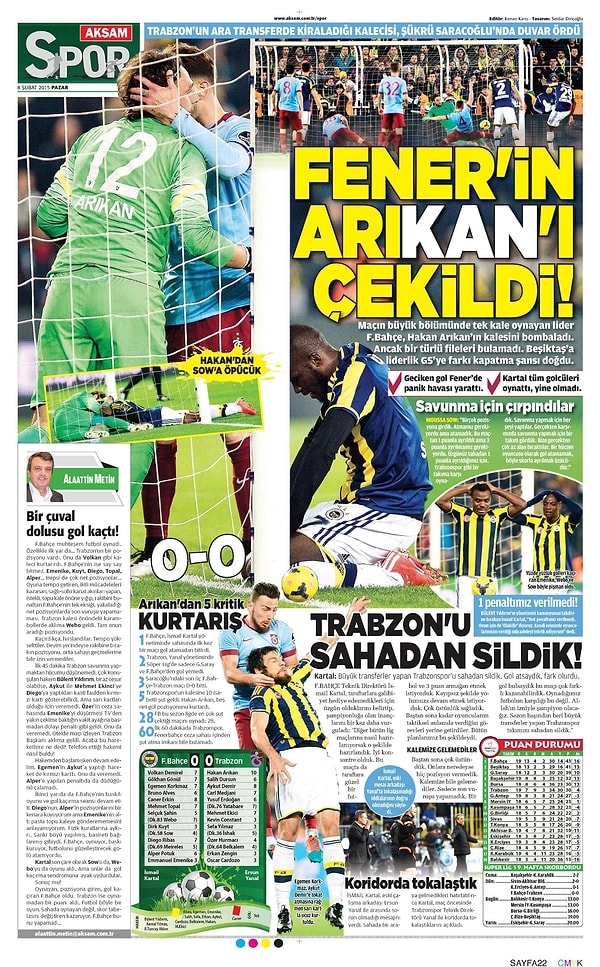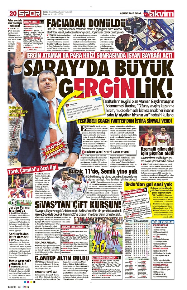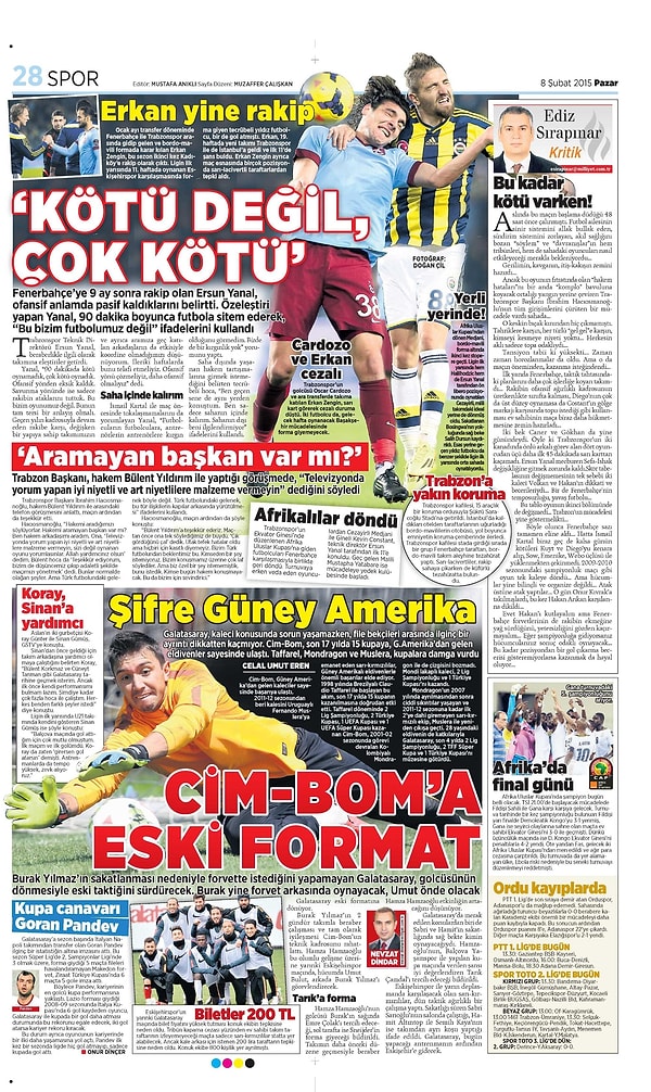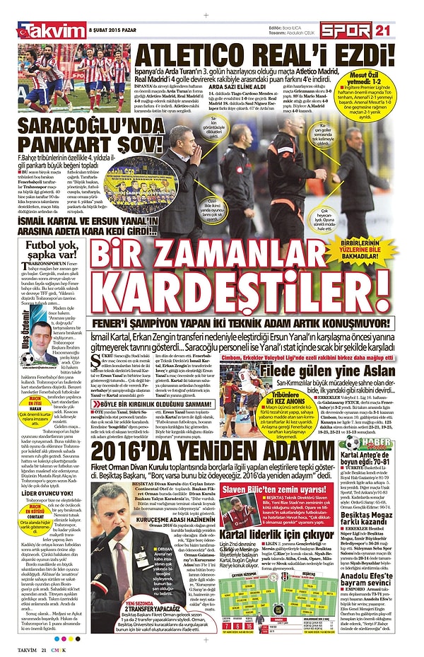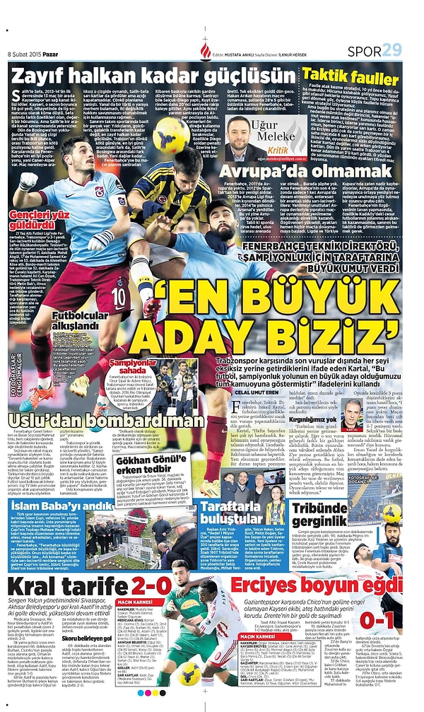 Sporun Manşetleri | 8 Şubat 2015