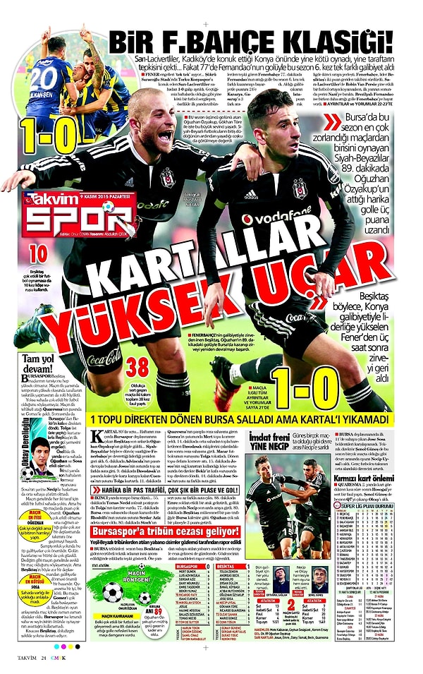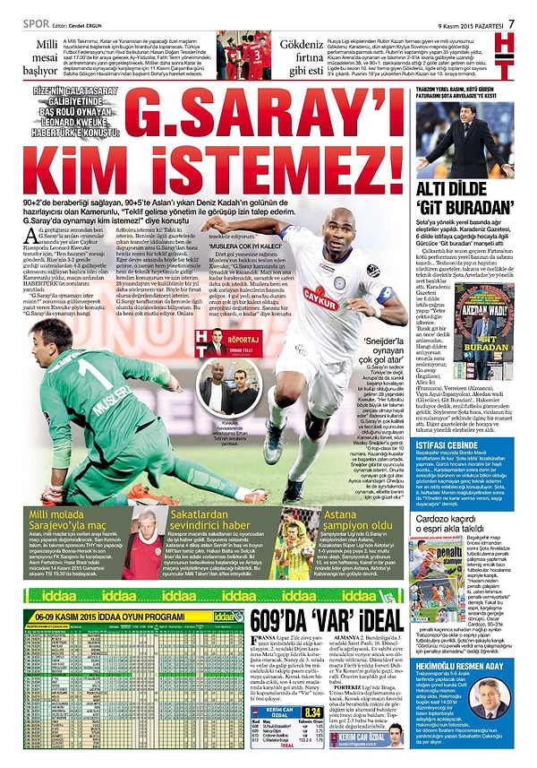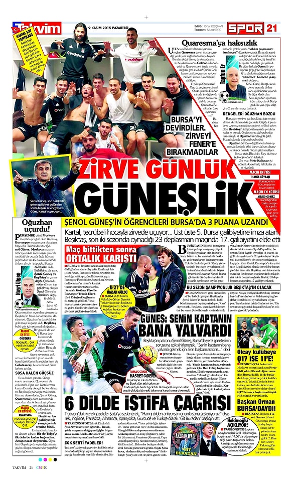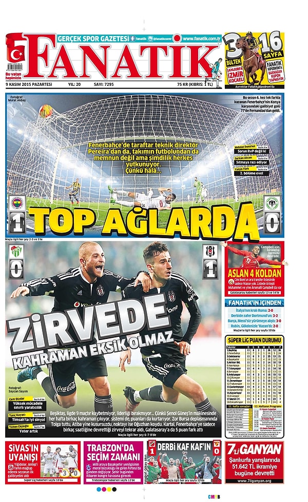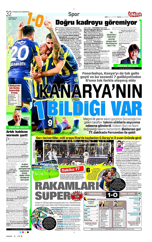 Sporun Manşetleri | 9 Kasım 2015