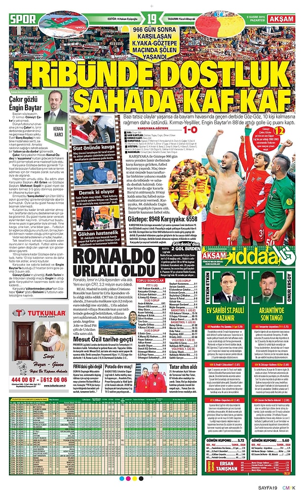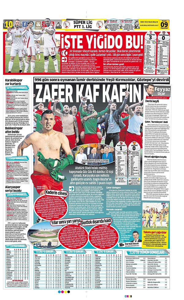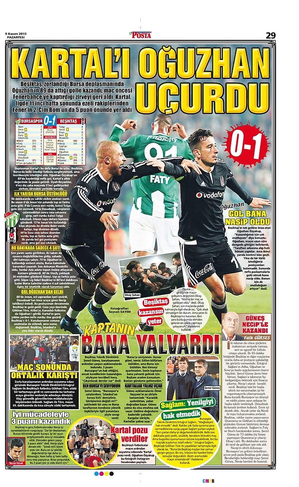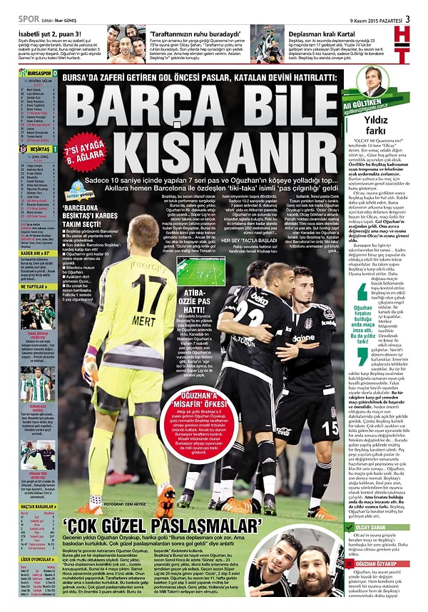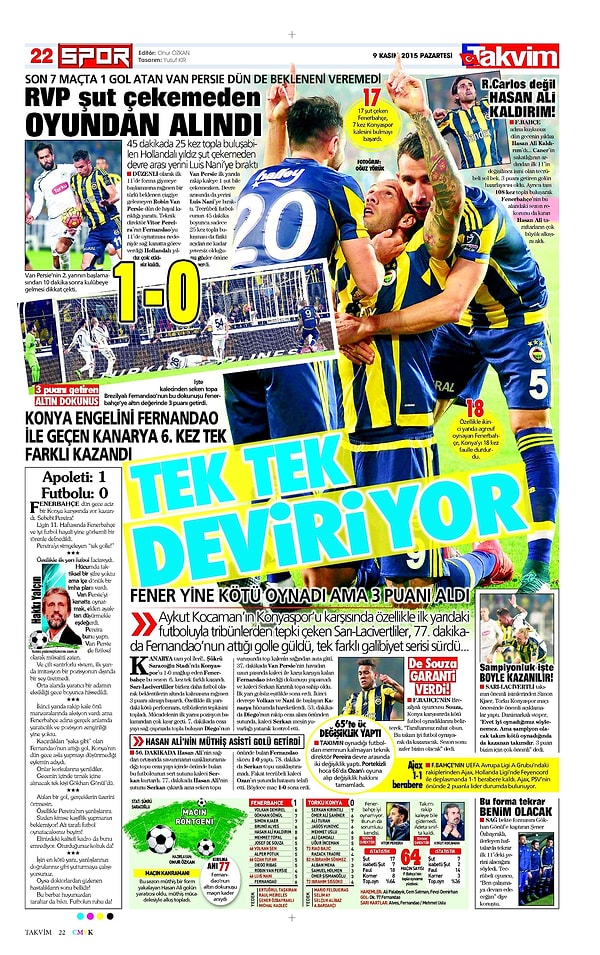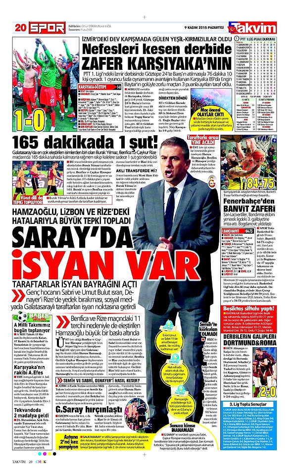 Sporun Manşetleri | 9 Kasım 2015