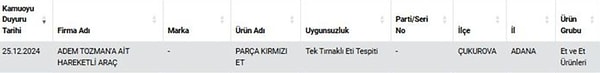 Son yapılan testlerde; sucukta kanatlı et ve sakatat zeytinyağında tohum yağı, çiftlik yoğurdunda bitkisel yağ, manda kaymakta inek, sütü kaşar peynir de ise nişasta tespit edildi.